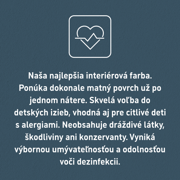 MATNÉ, UMÝVATEĽNÉ A ZDRAVÉ DISPERZNÉ INTERIÉROVÉ FARBY